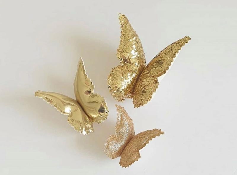3 Håndlavede Guldglimmer Sommerfugle til Børneværelset er den perfekte dekoration til, at forvandle ethvert rum. Disse unikke sommerfugle fra Little Custom Creations tilføjer elegance og farve. Som både børn og voksne vil elske.