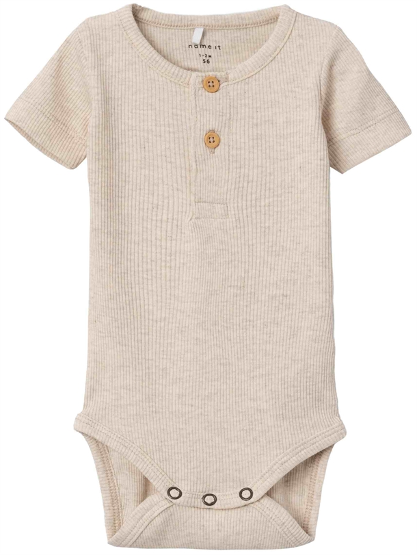 Kortærmet Rib Body med Knapper i Peyote Melange fra Name It er et uundgåeligt valg til de små. Denne body forener stil og komfort. Perfekt til daglig brug