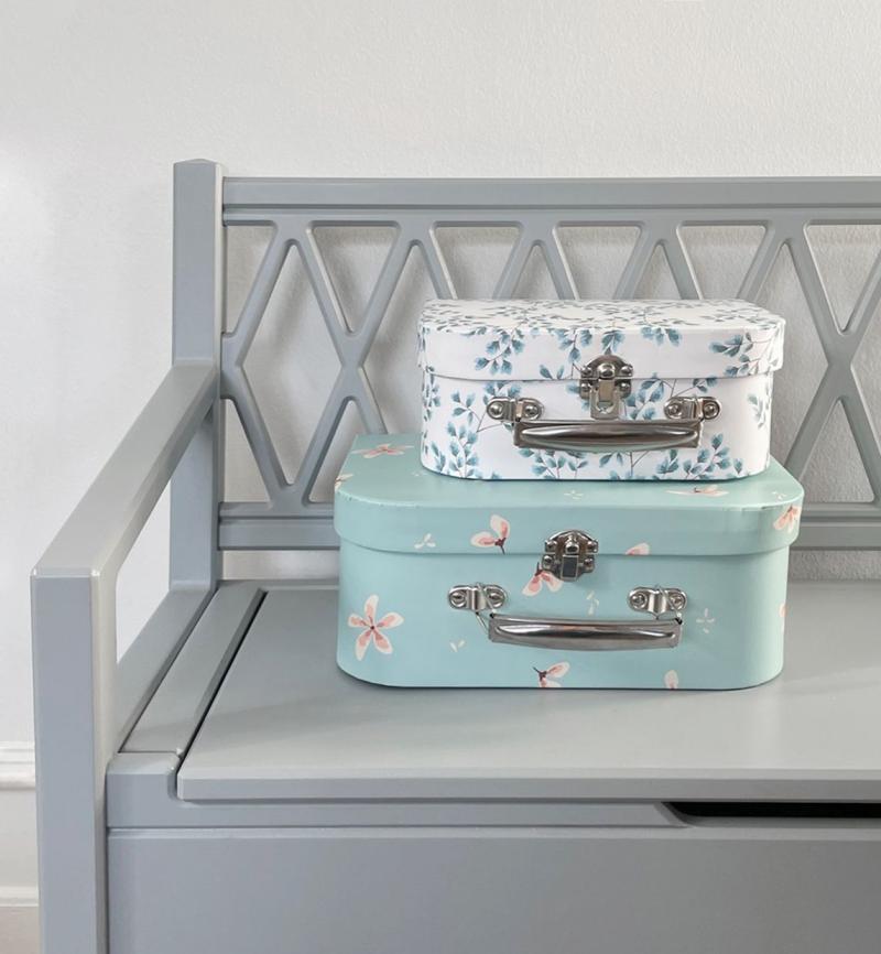 De to kufferter kommer i forskellige størrelser. Hvilket giver fleksibilitet i opbevaringen. Den største kuffert med Windflower Blue print er ideel til større genstande. Mens den mindre Fiori-kuffert er perfekt til de mindre ting.