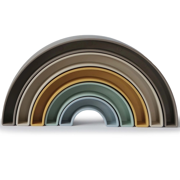 Miljøvenligt Regnbue Stablelegetøj fra Mushie er et fremragende valg til dit barns leg og udvikling. Dette legetøj kombinerer sjov med læring og er designet til, at styrke motoriske færdigheder. Med farverige stablekopper kan dit barn udforske former. Farver og balance.