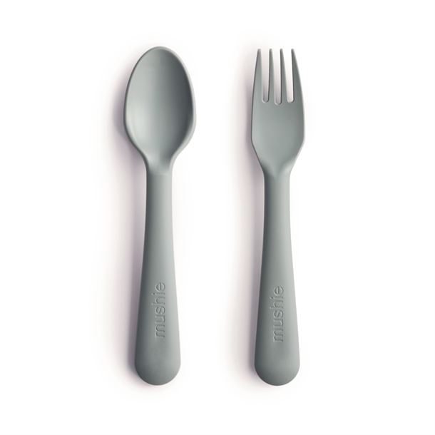 Mushie Bestik. Ske & amp; Gaffel i Sage er det perfekte valg til dit barns måltider. Dette sæt forener funktionalitet med stil og passer til enhver anledning