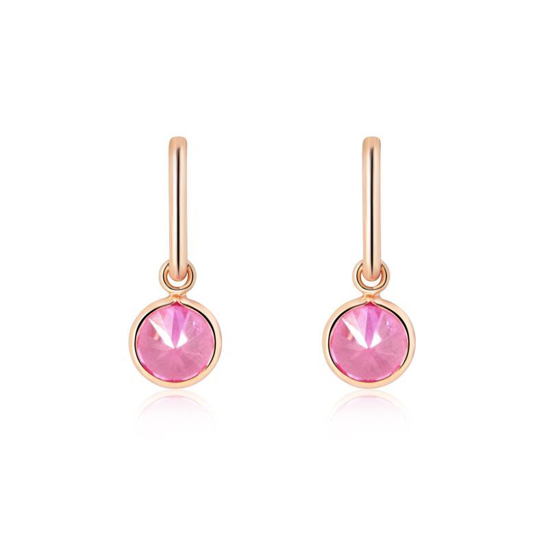Smykkerne er 100% nikkelfri. Hvilket gør dem velegnede til sensitiv hud. Den rosaguldbelagte overflade giver en varm glød. Der komplementerer den pink sten perfekt.