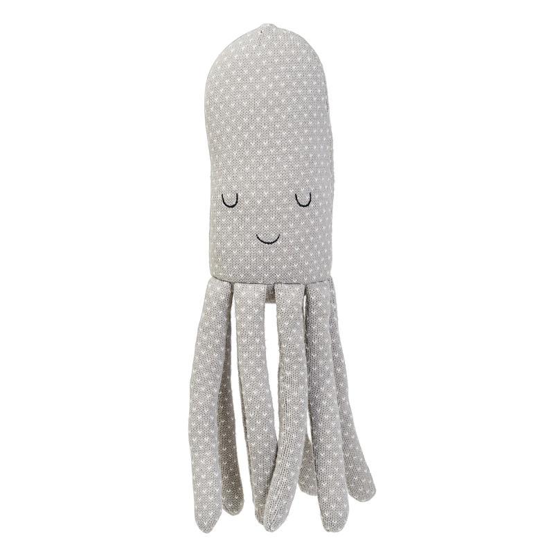 Sød strikket blæksprutte fra Bloomingville Mini er et must-have i enhver babys legetøjssamling. Denne bløde og lækre blæksprutte i grå bomuld forener komfort med æstetik og er ideel som gave til nyfødte.