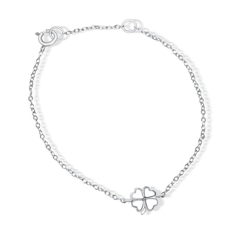 Sølv Armbånd med Hjerte Firkløver til Børn fra Luxbaby er et must-have smykke til de små. Armbåndet måler 15 cm og er designet specifikt til børn. Hvilket sikrer både stil og komfort.