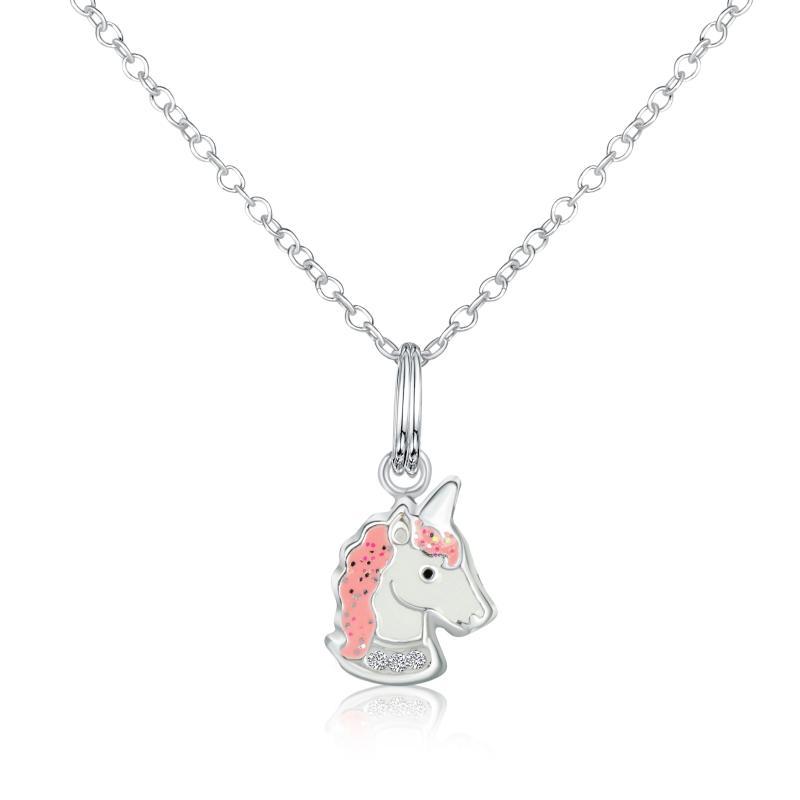 – Fint rosa enhjørning vedhæng i sølv med emaljebelægning